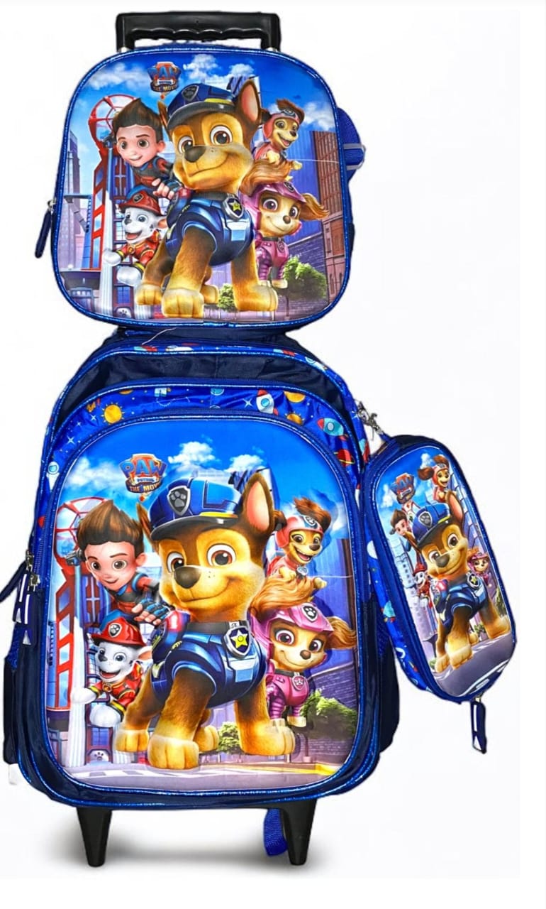 🧳 Kit Mochila de Rodinha Patrulha Canina 3 em 1 – Mochila + Lancheira + Estojo